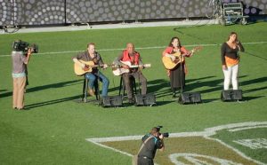 Das kulturpolitische „Zeichen“ war überfällig, stellt aber nur auf kleinem Gebiet einen Ausgleich her: Dank des von ANU moderierten ersten australischen Workshops AMPLify Indigenous Composers trafen sich mit (mehr)hundertjähriger Verspätung im März 2017 fünf Aborigines-Kunstschaffende. Die aktuellen Musikprojekte von Elizabeth Sheppard, Brenda Gifford, Troy Russell, Rhyan Clapham und Tim Gray wurden vom bekannten Ensemble Offspring am Eora College inmitten Sydneys präsentiert. Auch das Jahr 2018 war von dem Forum dafür ausersehen, mit gleicher Besetzung am selben Ort einen festen Platz innerhalb der australischen Musikszenen zu erobern.