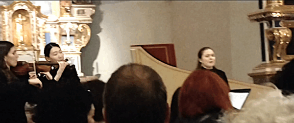 Das Kammermusikensemble ist nicht nur diesem besonderen Repertoire verpflichtet, sondern orientiert sich dank seiner Gründerin und Leiterin Veronika Sazonova an der aktuellen historischen Aufführungspraxis Alter Musik. So spielte Valeriya Kustitska mit schwebender Leichtigkeit die ausgedehnten schwierigen Parts der vorgestellten Werke von Elisabeth-Claude Jacquet de la Guerre, Mrs Philarmonica, Julie Pinel, Anna Amalia von Preussen und Maria Antonia Walpurgis von Bayern auf einer Geige in Alter Mensur.